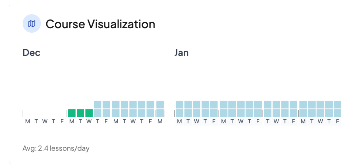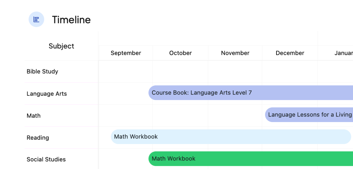 See a timeline showing when each course starts, ends, and how they overlap throughout the year.