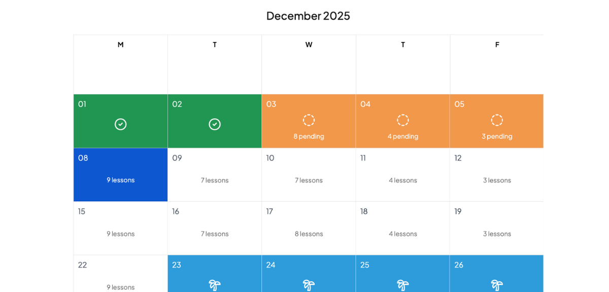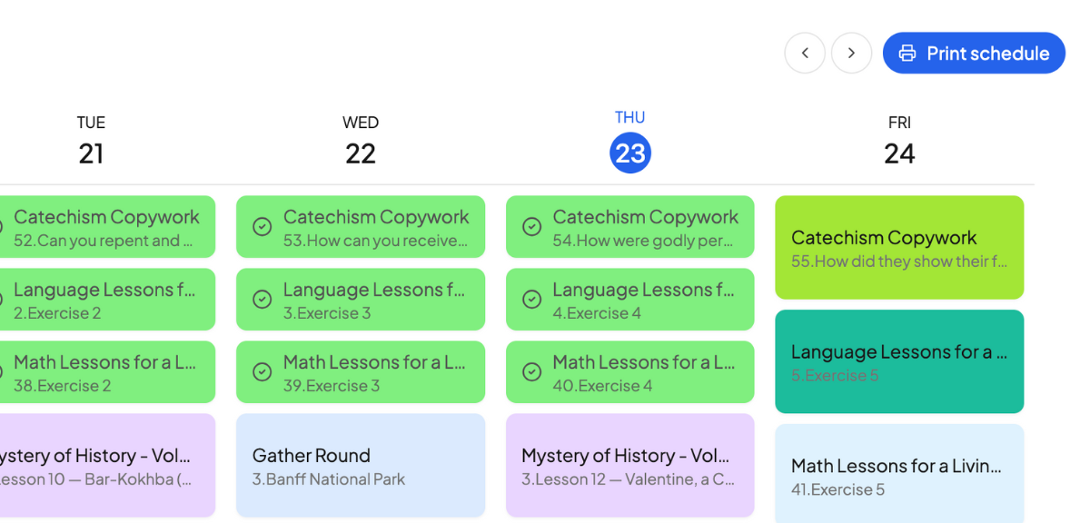 A simple space for students to view assignments, check off lessons, and build independence.