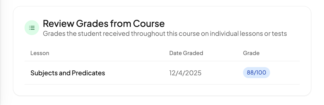 Review progress holisticallySee the big picture of how each course went. Review performance trends, identify areas for growth, and celebrate achievements across the entire curriculum.