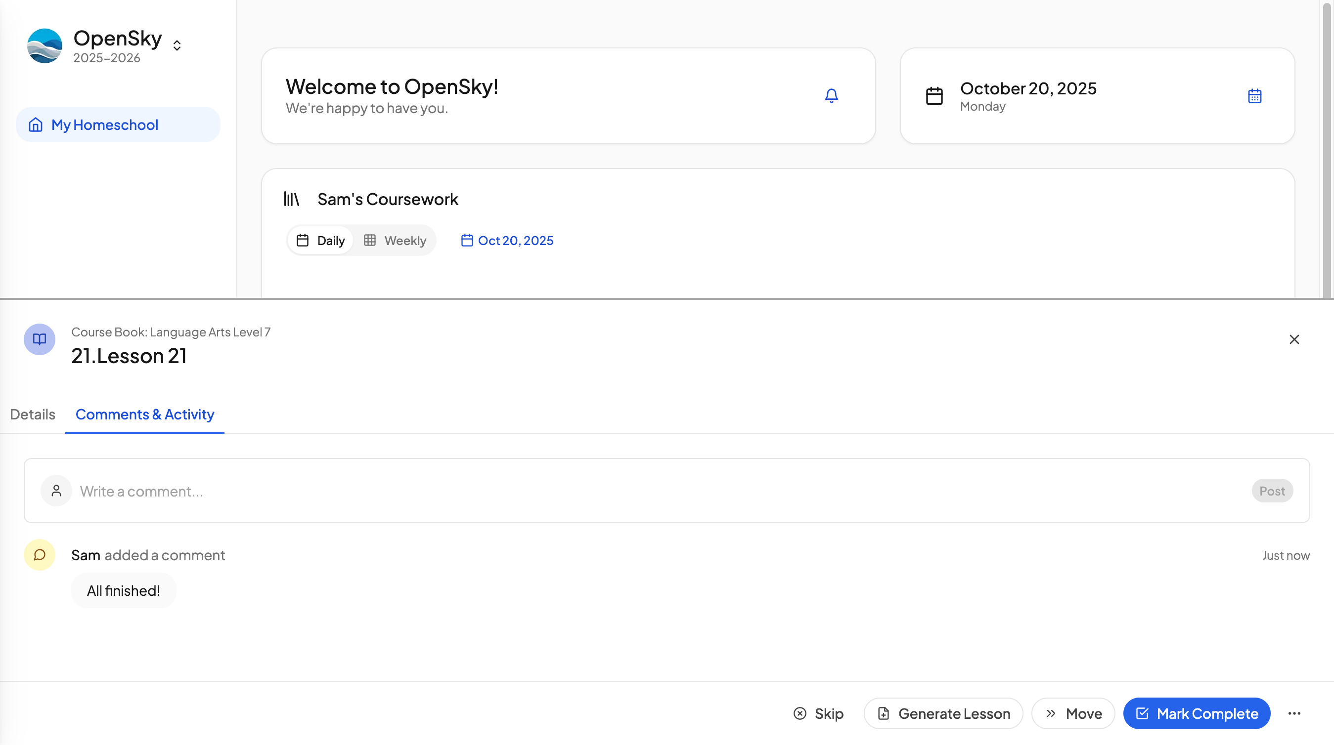 Foster independence & ownershipGive your students their own login where they can see daily assignments, access resources, and track their own progress. No parent nagging required.