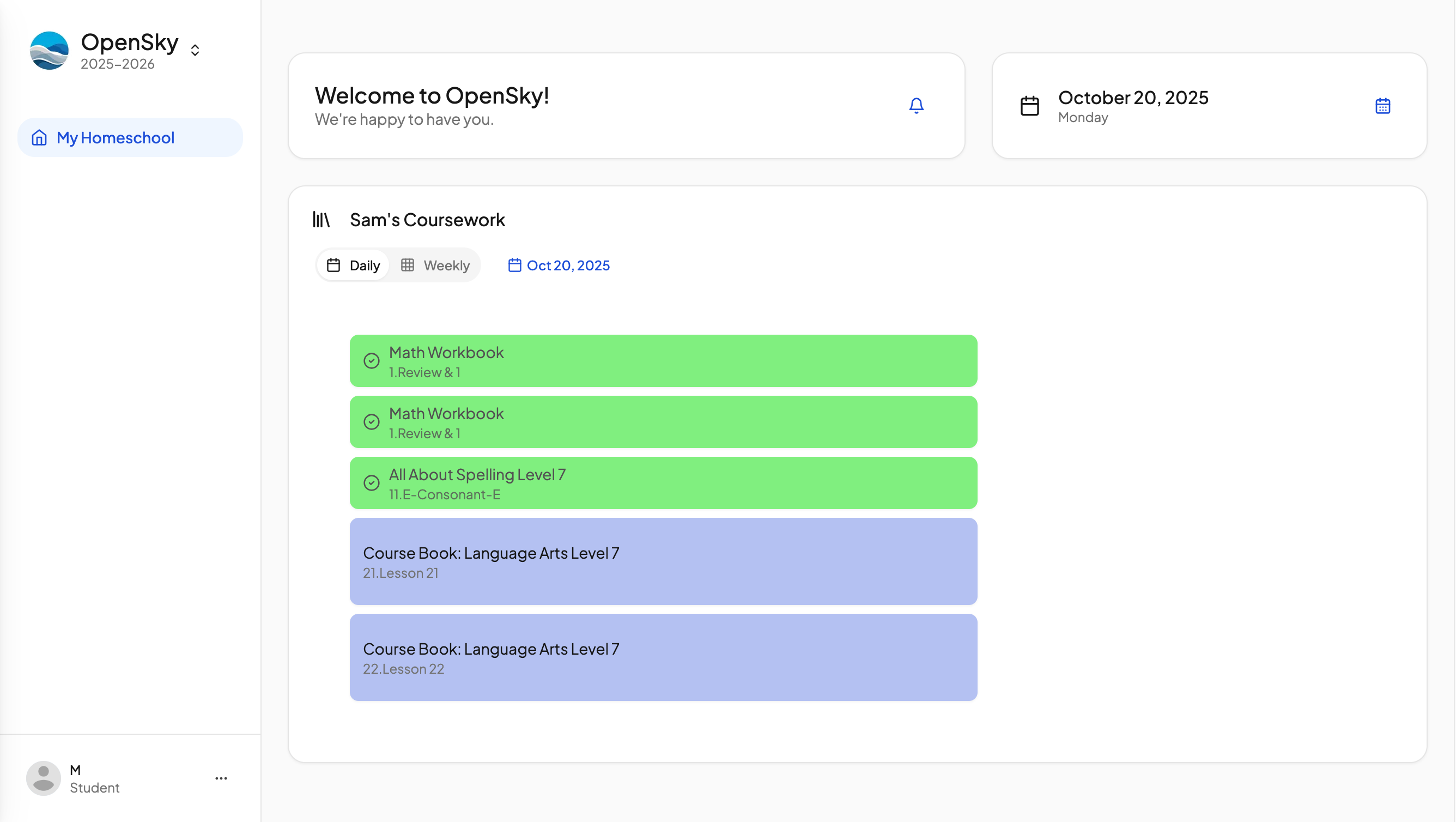 Student Dashboard AccessA simple space for students to view assignments, check off lessons, and build independence.
